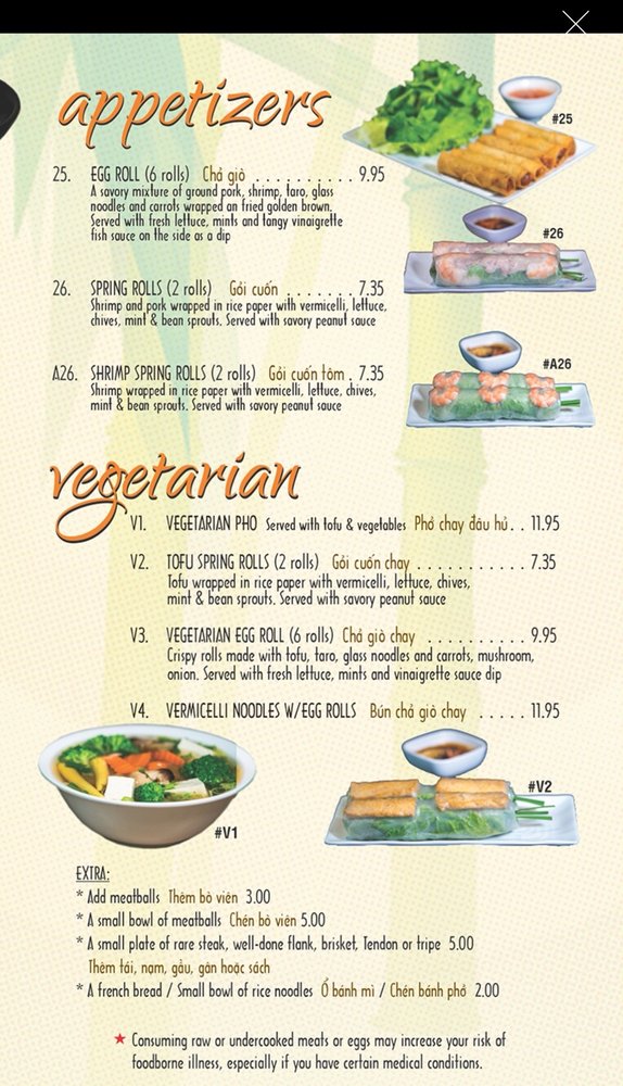 Welcome to Pho Cow Cali Express, a Vietnamese restaurant located in San Diego, CA. Known for their high-quality meats and generous portion sizes, this spot offers a wide range of dishes from soups to desserts. Customers praise the flavorful vegetarian pho and the variety of rice dishes available. The lively atmosphere and efficient service make dining here a delightful experience. The house special fillet mignon pho is a standout, always served piping hot. With quick service and affordable prices, Pho Cow Cali Express has become a go-to spot for many pho lovers in the Mira Mesa area. Whether dining in or opting for takeout, this restaurant guarantees a satisfying meal with excellent flavors. Experience the best of Vietnamese cuisine at Pho Cow Cali Express.